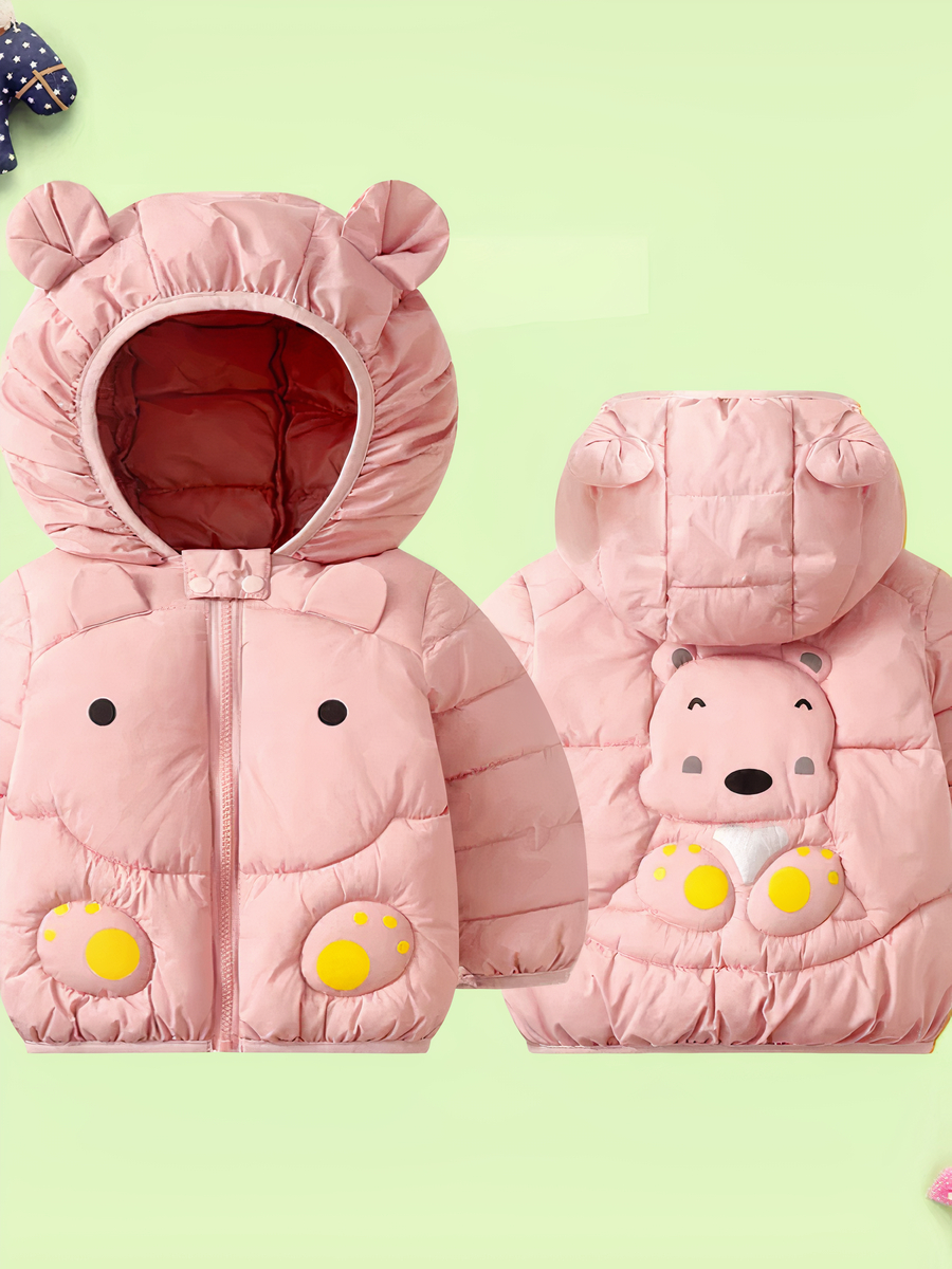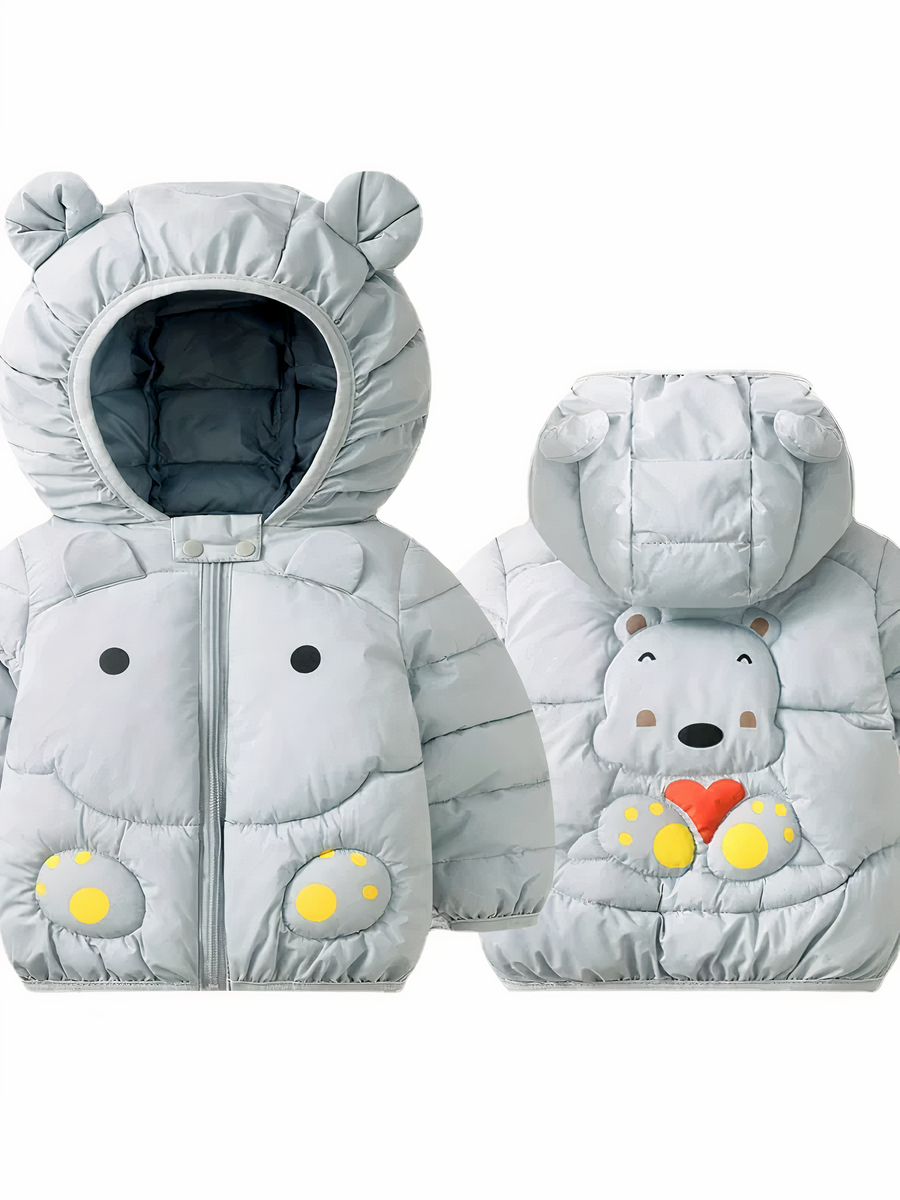 La capuche ornée d'oreilles d'ourson transforme chaque sortie en une aventure joyeuse. Le motif d'ourson dans le dos, tenant un cœur, ajoute une dose de fantaisie et éveille l'imagination des tout-petits, faisant de cette veste bébé fille un véritable trésor dans la garde-robe de votre enfant.