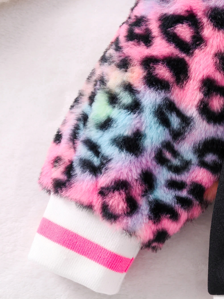 Le mélange audacieux de l'imprimé léopard avec le contraste élégant du rose et noir fait de cette veste fille, un choix parfait pour celles qui aiment se démarquer. La broderie du A ajoute une touche d'originalité, faisant de cette pièce plus qu'un simple vêtement, un véritable atout de mode.