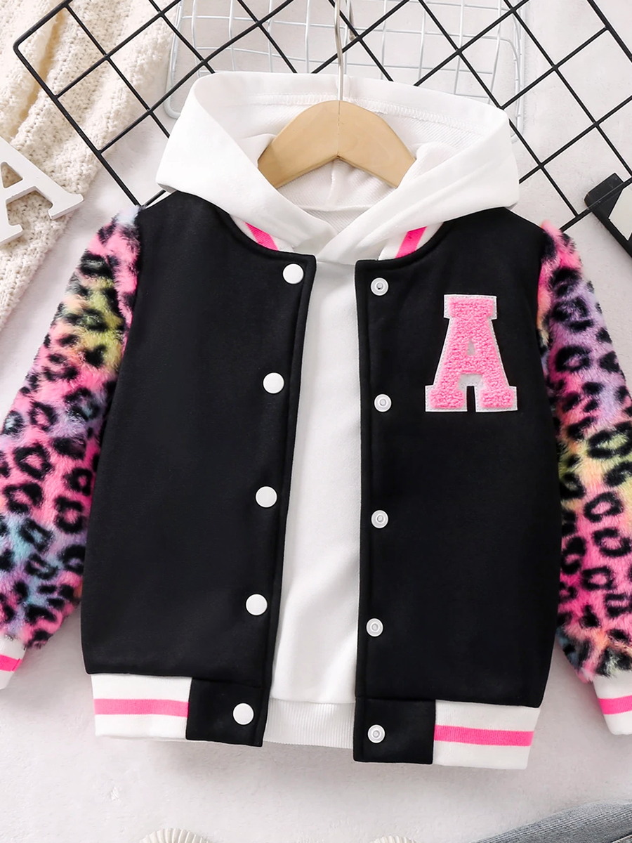 Offrez à votre princesse une touche d’originalité avec notre veste fille style baseball avec imprimé léopard. Cette pièce unique en polyester combine avec brio confort et tendance, grâce à son design rose et noir, rehaussé par un A brodé. Un must pour les jeunes fashionistas.