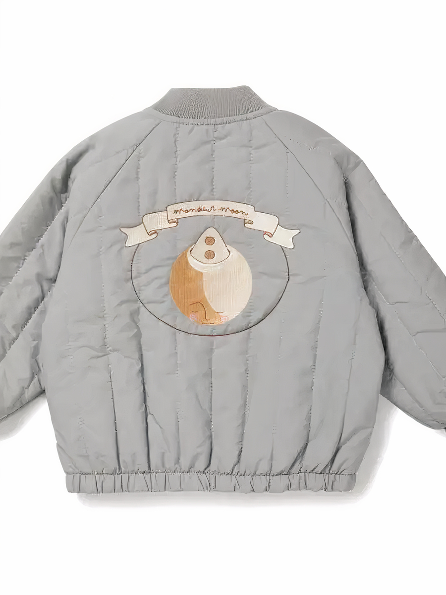 Le bombers matelassé est conçu pour être à la fois pratique et joli. Outre les logos créatifs dans le dos, la veste pour fille bénéficie d'une construction de qualité avec des finitions soignées, promettant durabilité et résistance au quotidien. Les couleurs neutres, grise et marron, facilitent l'association avec d'autres pièces, permettant une variété de looks mignons et tendance pour les jeunes filles.