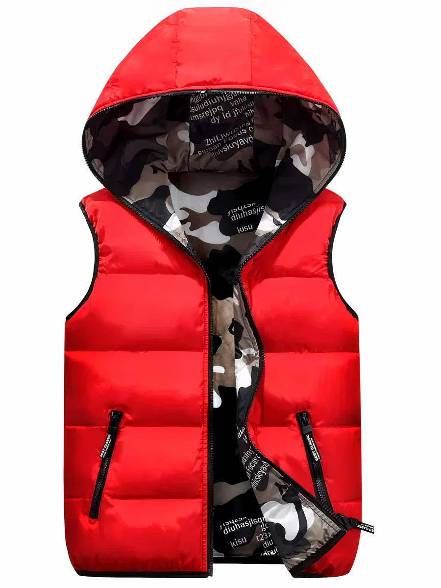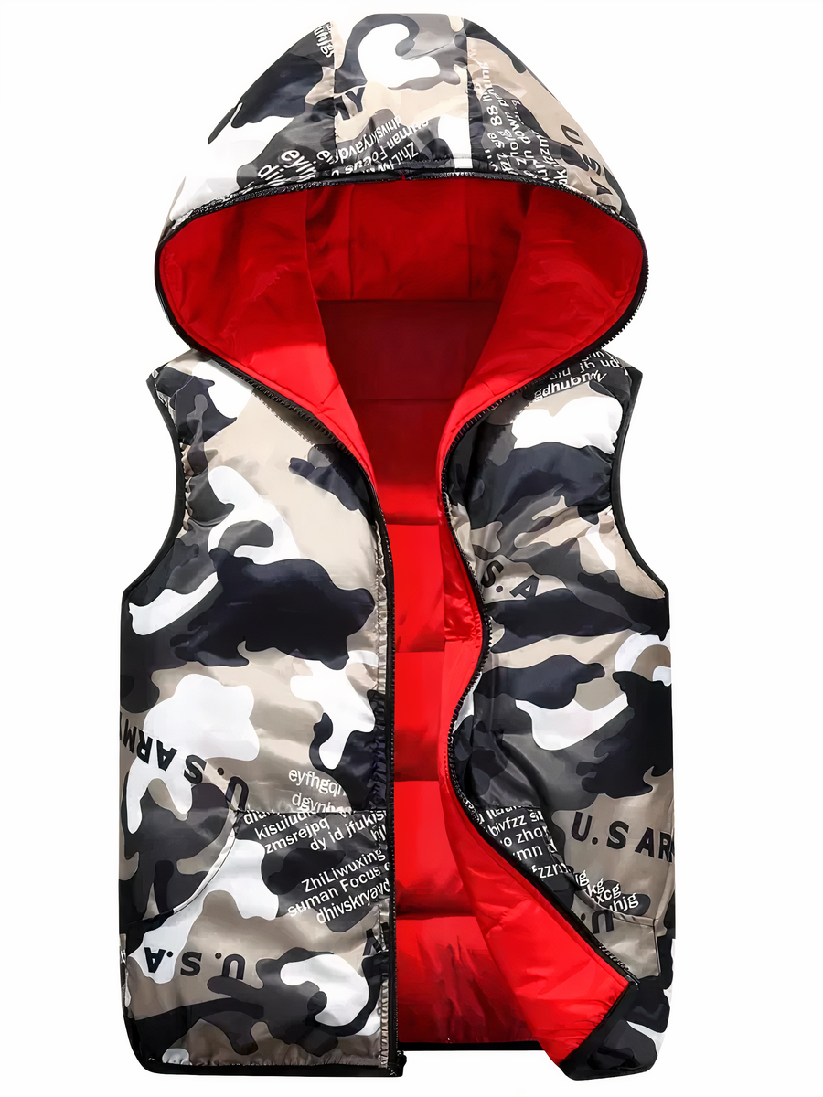 Offrez à votre jeune aventurier la liberté de choisir son style chaque jour avec notre veste réversible. Le côté rouge offre une touche de couleur éclatante, tandis que le camouflage invite à l'exploration. La capuche et la construction sans manches en font un choix idéal pour les saisons de transition, alliant chaleur et mobilité.