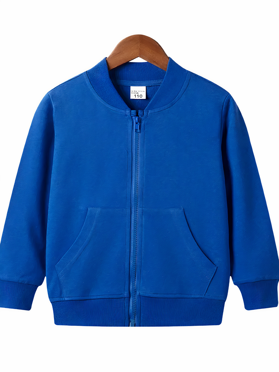 Notre veste en bleu, combine harmonieusement confort et style. Le tissu doux en coton et modale enveloppe votre enfant d'une douceur respirante, tandis que la fermeture éclair assure une utilisation facile. Les poches ajoutent une touche pratique à cette pièce versatile, faisant d'elle un choix parfait pour les jeunes actifs.