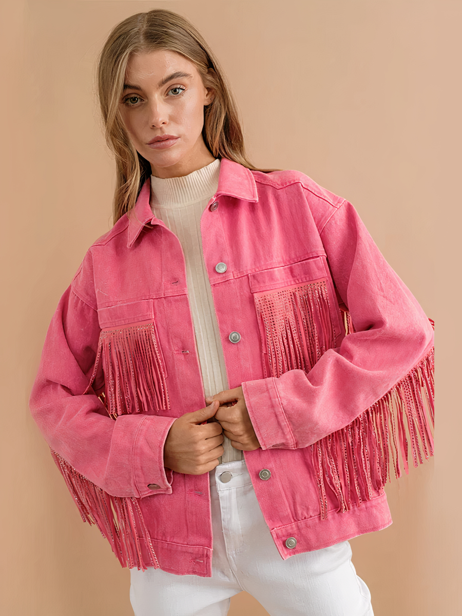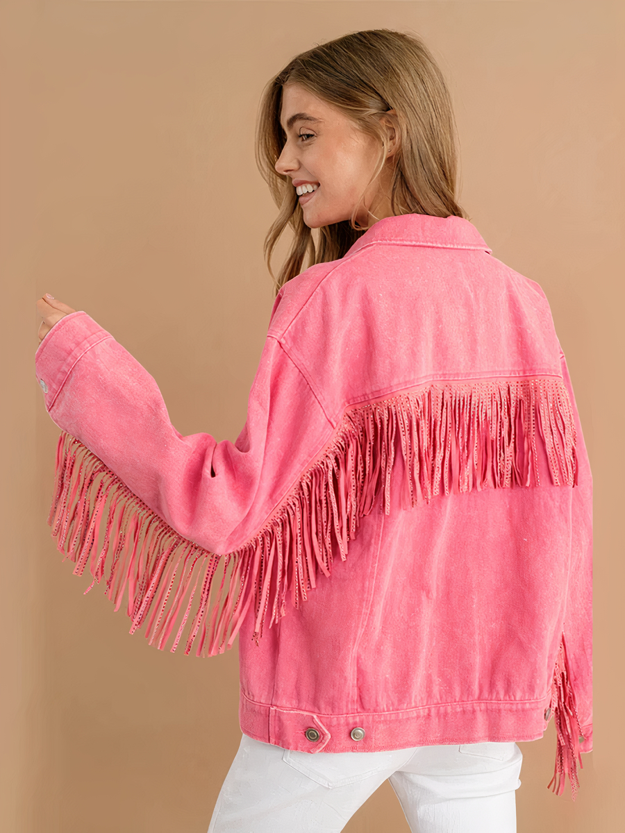 Veste à franges femme rose flashy de style vintage