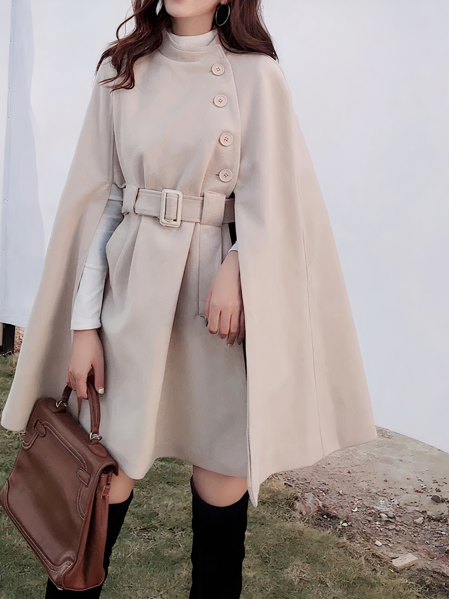 Veste cape femme beige et ample avec ceinture
