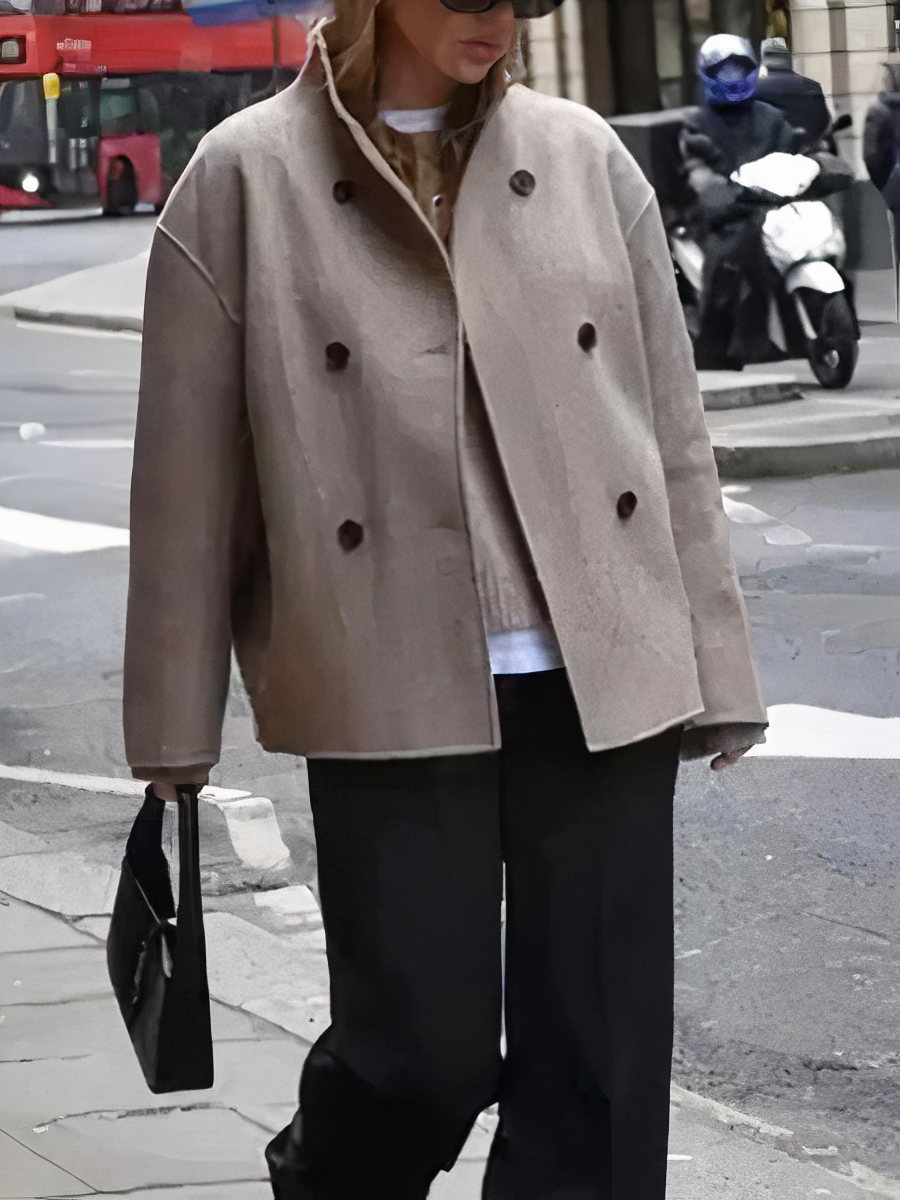 Veste chaude femme beige et épaisse avec boutons