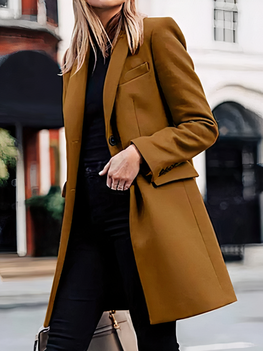 Cette veste habillée marron longue pour femme est l'incarnation de l'élégance moderne. Le tissu acrylique offre un confort exceptionnel, idéal pour les changements de saison. Le design à simple boutonnage et le col rabattu donnent une allure structurée et soignée. Avec ses poches bien placées, cette veste est parfaite pour les femmes qui cherchent à combiner fonctionnalité et style.