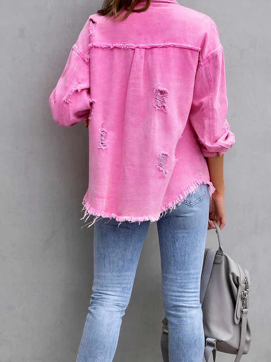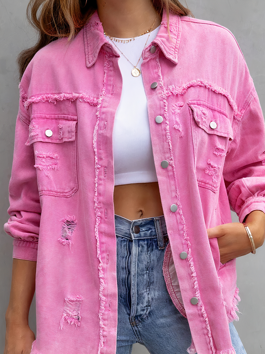 Découvrez le mélange parfait de style et de confort avec cette veste légère rose. Son design effiloché apporte une touche audacieuse à vos tenues, tandis que les boutons et les poches offrent une fonctionnalité essentielle. Idéale pour les journées printanières ou les soirées d'été, elle incarne un style décontracté et moderne.