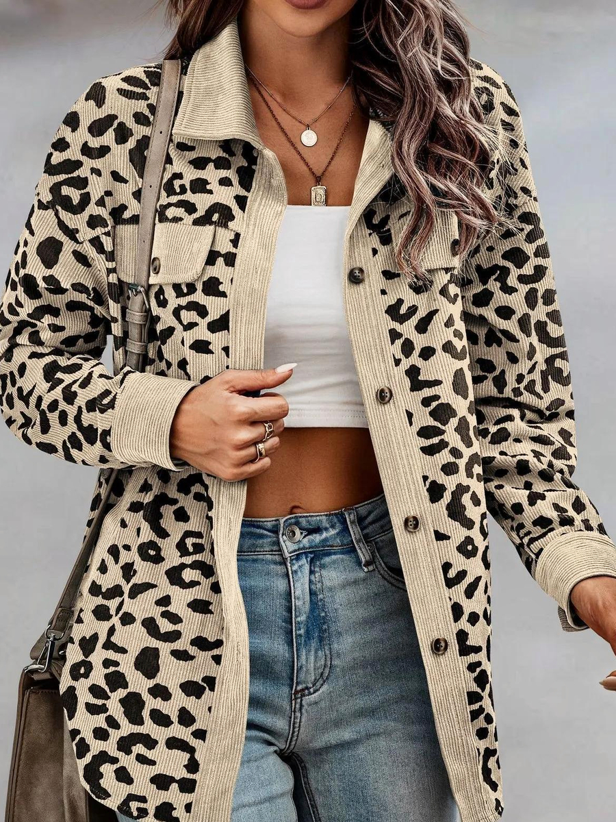 Cette veste léopard pour femme représente l'union parfaite entre confort et style. Le design intemporel avec des motifs léopard noir sur une base beige, kaki ou rose, enrichi par un col à revers et un boutonnage simple, crée une allure sophistiquée. Conçue pour celles qui n'ont pas peur de se démarquer, elle promet de captiver les regards à chaque occasion.