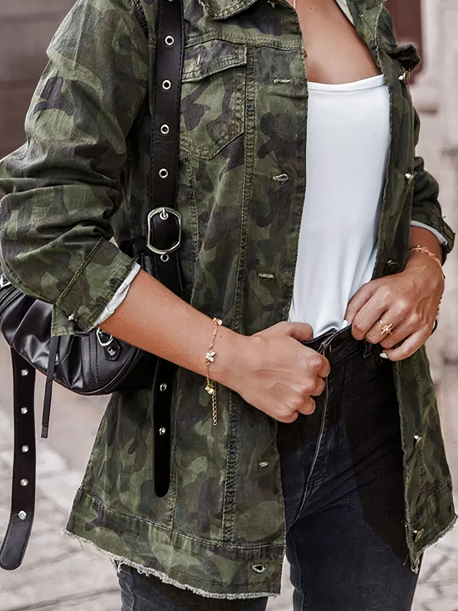 Chaque détail de cette veste militaire femme a été pensé pour allier fonctionnalité et esthétique. Les boutons ajoutent une touche chic et pratique, pendant que le col rabattu apporte une allure sophistiquée. Pour une sortie en ville ou pour une journée plus décontractée, cette veste saura se faire remarquer.
