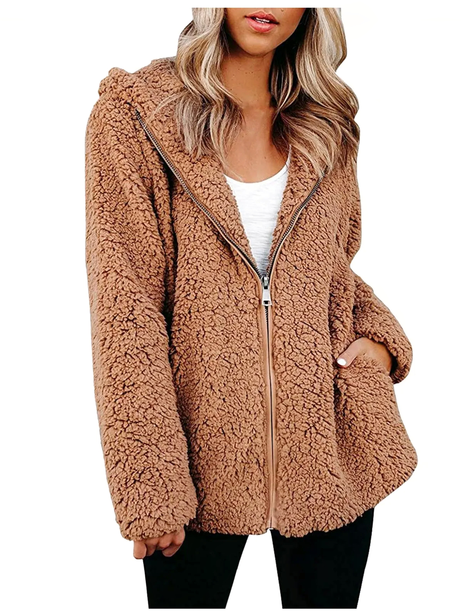 Découvrez notre veste molletonnée épaisse pour femme, disponible en marron élégant et bleu intense. Fabriquée en polyester de haute qualité, elle dispose d’une grande capuche et d’une fermeture à zipper centrale. Parfaite pour l’hiver, cette veste combine confort, résistance et protection contre le froid.