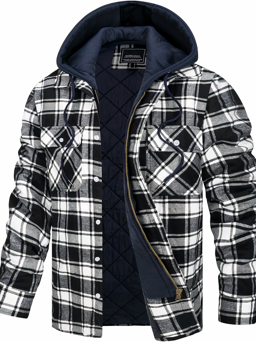 Veste carreaux homme avec capuche et multipoche