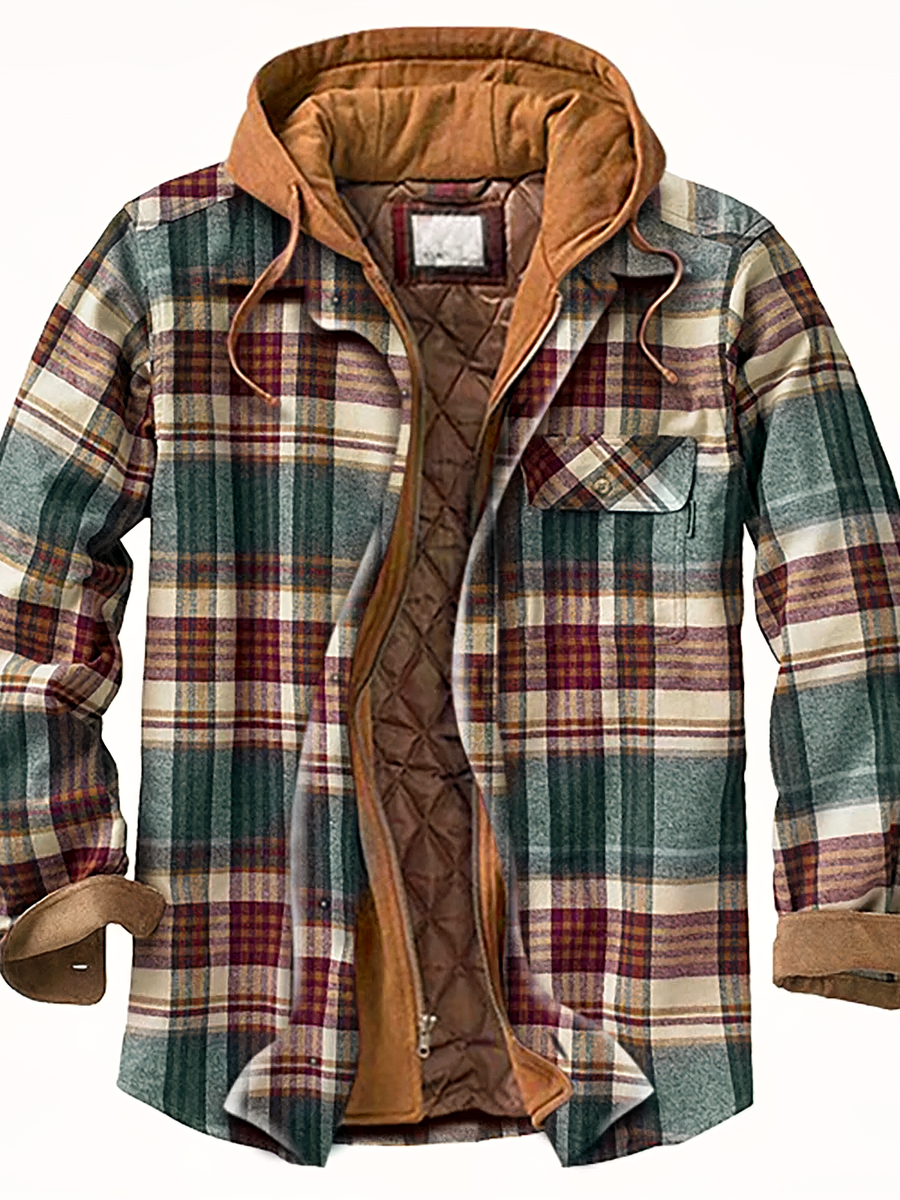 La capuche de la veste à carreaux pour homme, ajustable par des cordons de serrage, offre une flexibilité et une protection supplémentaire contre les intempéries. L'isolation thermique et la coupe vent garantissent de rester au chaud et confortable, peu importe le temps. Le design polyvalent de la veste convient à une variété d'occasions, qu'elle soit utilisée pour des sorties décontractées ou des événements plus formels.