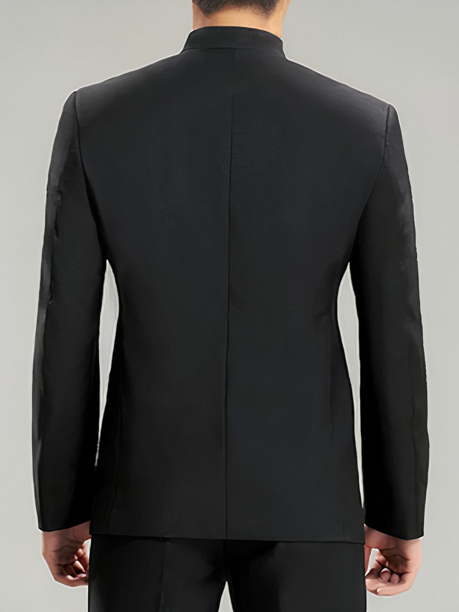 Le col mao élégant de cette veste habillé pour homme apporte une touche de sophistication unique, parfaitement adaptée aux événements formels. Sa polyvalence en fait un ajout essentiel à toute garde-robe masculine, offrant un look formel sans être trop conventionnel. Le design élégant, avec sa coupe cintrée et son style chinois, assure une présence remarquée dans toute réunion ou événement professionnel.