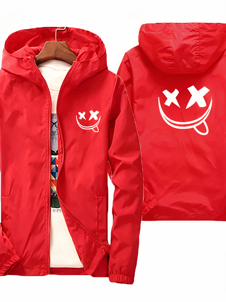 Découvrez notre veste légère homme coupe-vent avec un smiley imprimé, un must pour ceux qui recherchent un mélange parfait de style et de fonctionnalité. Le design original avec un smiley imprimé apporte une touche ludique et moderne à votre look. Disponible en orange, rouge et bleu