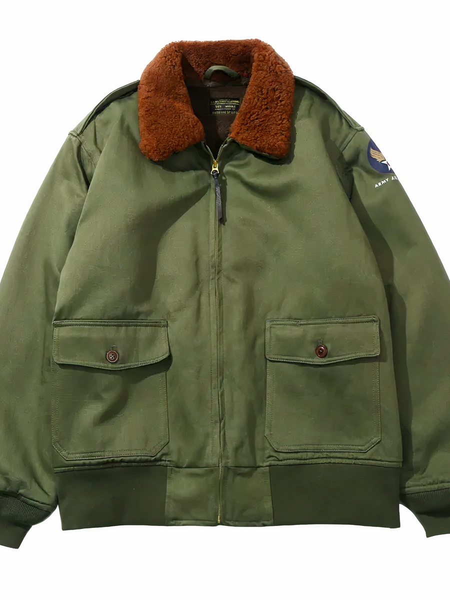 Le col à revers en fausse fourrure marron n'est pas seulement un détail élégant, il est également conçu pour offrir une protection supplémentaire contre le froid. L'intérieur polaire marron, doux et confortable, crée une barrière contre les basses températures, vous permettant de rester au chaud même dans les conditions les plus rigoureuses. Cette veste aviateur vous garantit de rester au chaud tout en affichant un style raffiné et masculin.