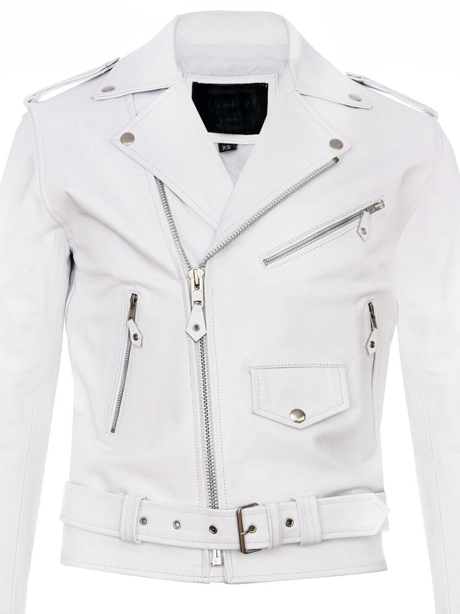 Cette veste de moto pour femme, en blanc éclatant, allie élégance et fonctionnalité. Fabriquée en simili cuir de qualité, elle dispose d’une fermeture zippée, d’un col à revers stylé, de poches pratiques et d’une ceinture ajustable, offrant un ajustement personnalisé et un look distinctif.