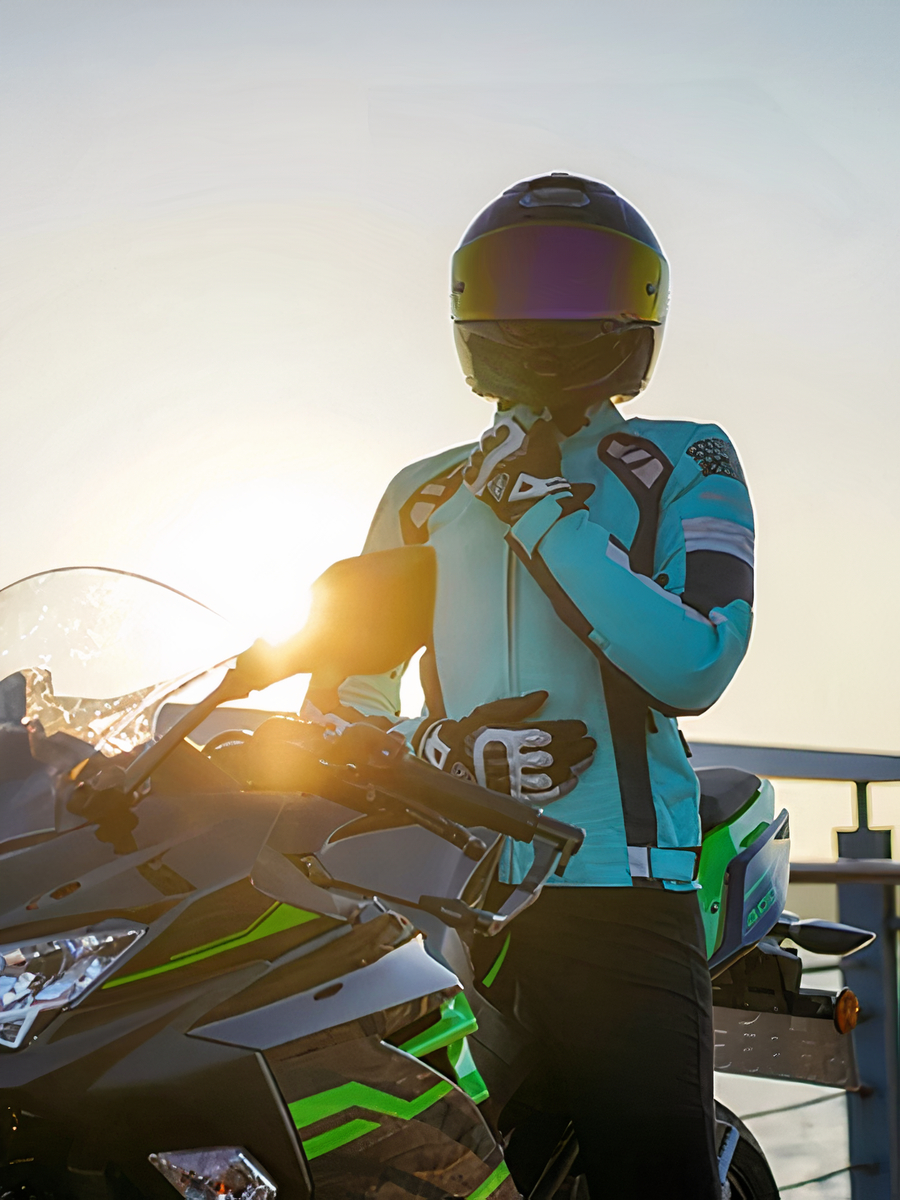 Veste moto femme coupe-vent avec col ajustable et protections