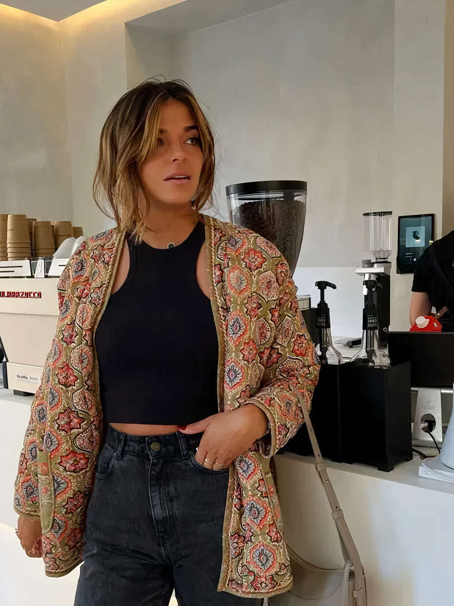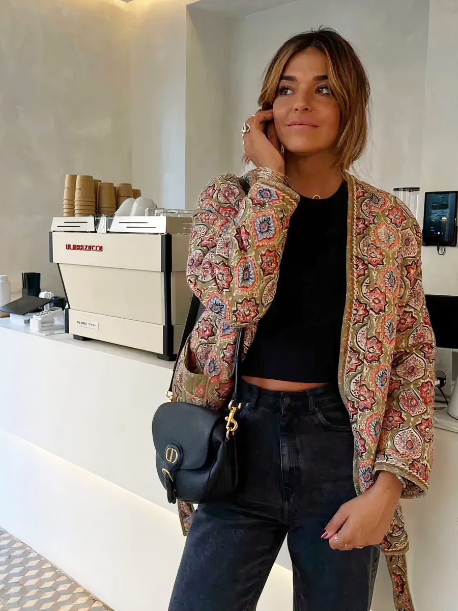 Embrassez l'hiver avec style grâce à cette veste patchwork matelassée aux imprimés fleuris. Elle incarne la fusion parfaite entre l'artisanat traditionnel et les tendances modernes, offrant une pièce unique qui attire l'attention. Son confort, sa chaleur et son design élégant en font un indispensable de la garde-robe hivernale pour celles qui ne veulent pas sacrifier leur style au profit de la fonctionnalité.