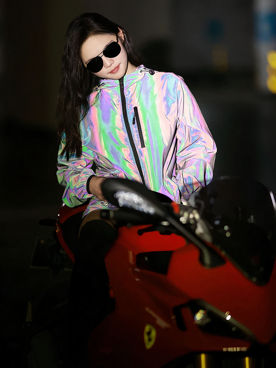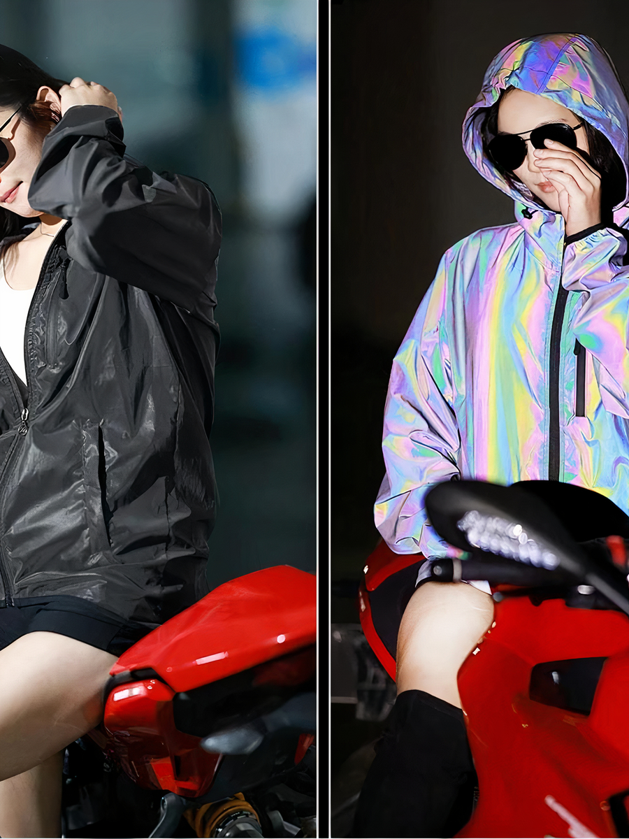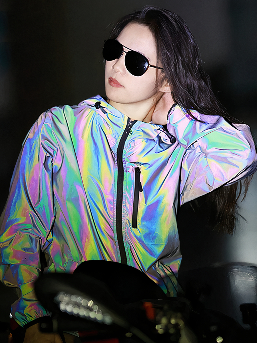 Cette veste noire réfléchissante est bien plus qu'un vêtement de pluie, c'est une déclaration de style. Sa capacité à changer de couleur dans l'obscurité en une teinte arc-en-ciel élégante attire l'attention, tout en augmentant votre visibilité pour une sécurité accrue lors de vos déplacements nocturnes. Que vous cherchiez à compléter une tenue décontractée ou à ajouter une couche protectrice par-dessus votre tenue de soirée, cette veste est le choix parfait.