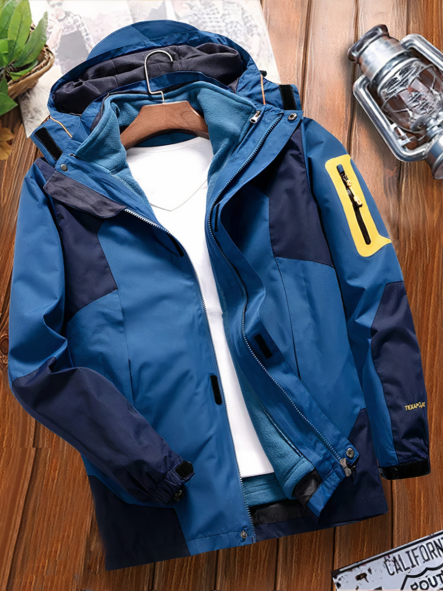 Cette veste décontractée ne fait aucun compromis entre style et fonctionnalité. Sa couleur bleue vibrante et sa conception imperméable vous gardent au sec avec élégance, même lors des averses imprévues. La capuche ajoute une couche supplémentaire de protection, vous permettant de braver les éléments avec confiance.